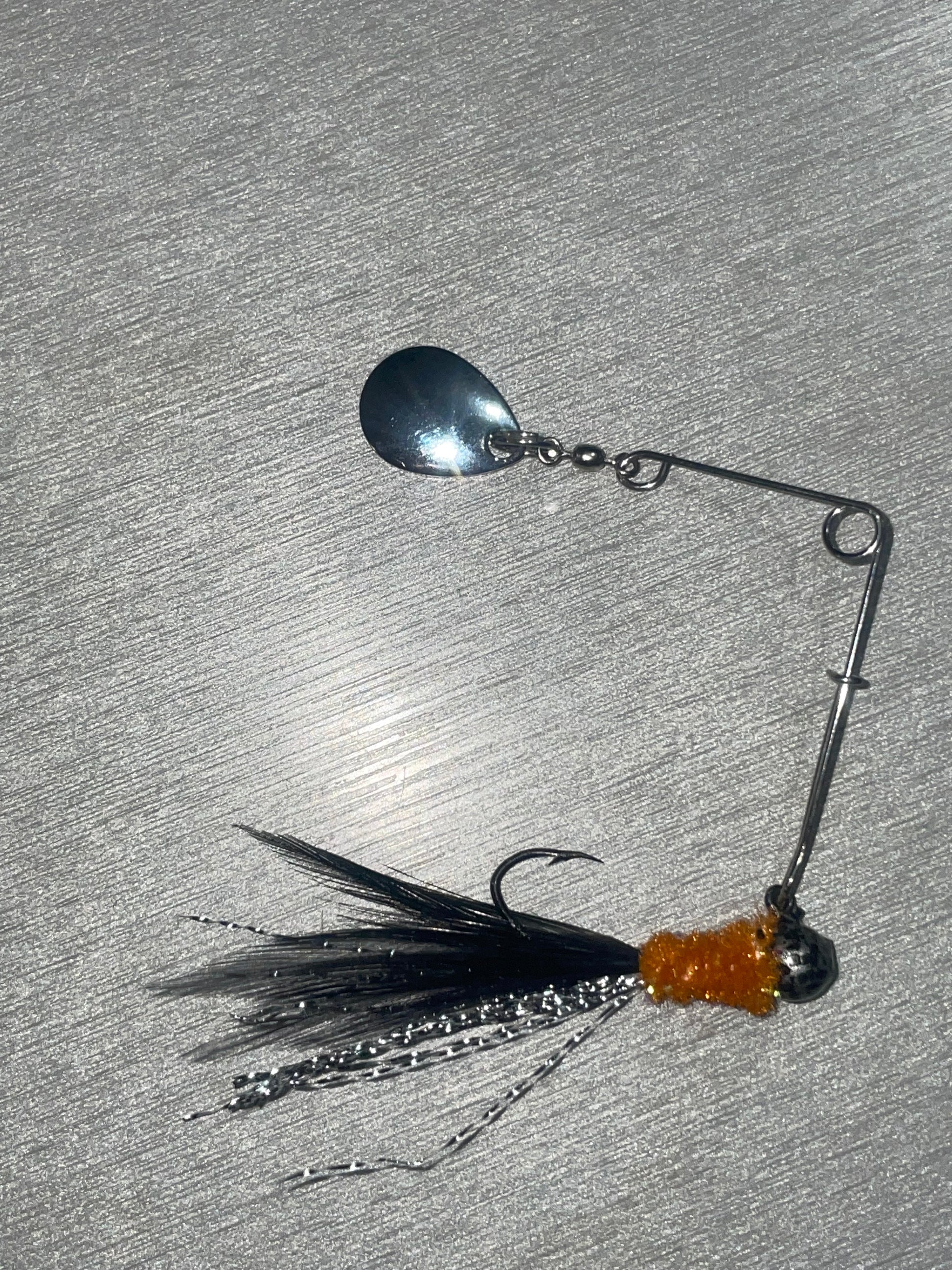 •Jig is tied with Black/Silver vein head w/ Orange chenille, black tail, and silver flash